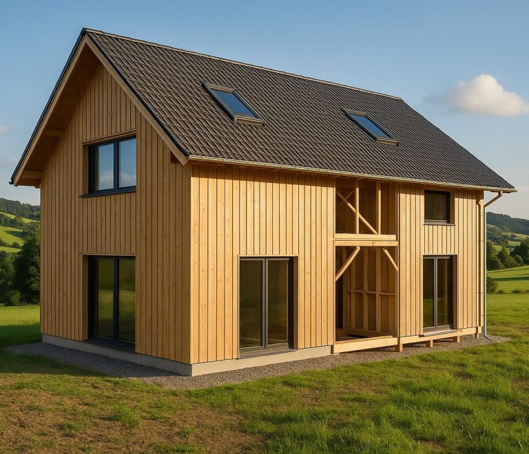 Nachhaltiger Neubau in Holzrahmenbauweise – energieeffizient, ressourcenschonend und passend zu modernen Wohnansprüchen. Für alle, die bewusst bauen wollen.